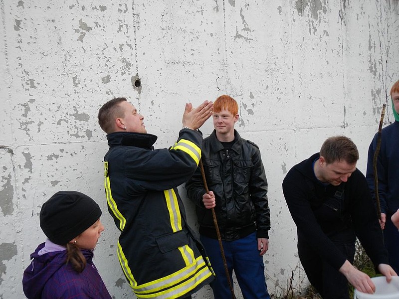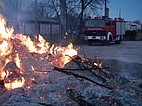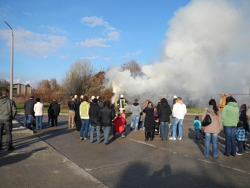 Nach dem Eintreffen auf dem Feuerwehrgelände wurde das Osterfeuer entzündet.