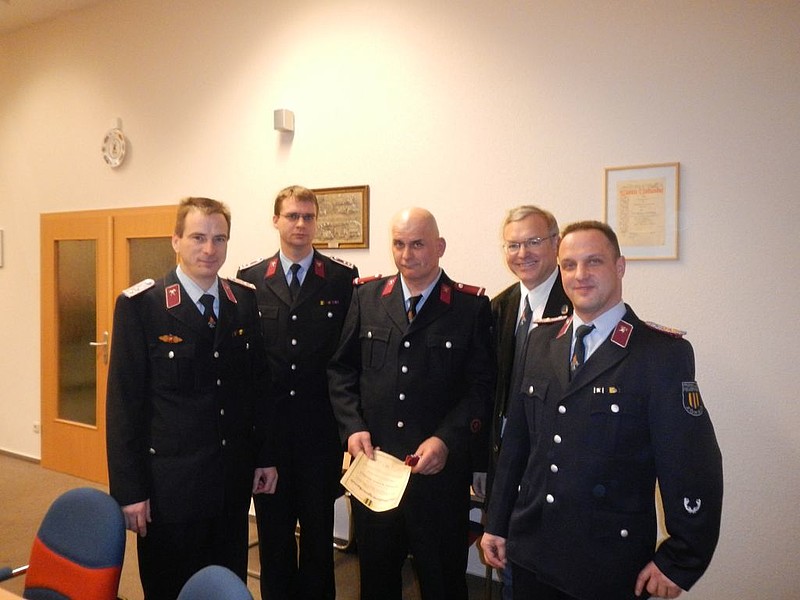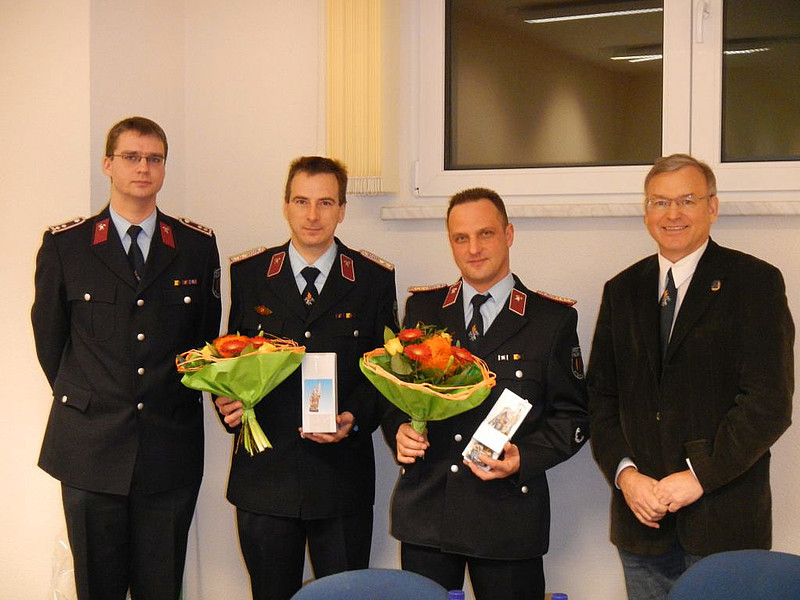 Während der Versammlung bekamen wir Besuch von unserem Landrat Uwe Schulze, der noch etwas Besonderes im Gepäck hatte. Zum Tag der Ehrenamtlichen im November 2012 wurden die Kameraden Matthias Winter und Detlef Schmidt für ihre Leistungen mit dem Brand- und Katastrophenschutz-Ehrenzeichen des Landes Sachsen-Anhalt in Gold ausgezeichnet. Diese Auszeichnung nahm der Landrat zum Anlass an beide Kameraden eine Ehrenurkunde des Landkreises zu überreichen, welche mit großer Freude entgegen genommen wurde. Als besonderes Dankeschön für seine Leistungen in der Feuerwehr wurde unserem Kameraden Karsten Maukisch ein Präsentkorb überreicht. Abschließende Grußworte durch den Bürgermeister der Stadt Zörbig, Rolf Sonnenberger, beendeten die Versammlung.