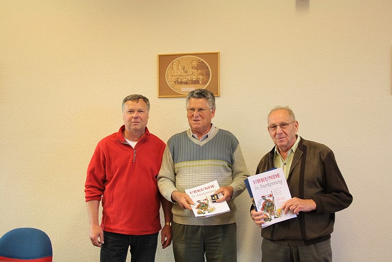 Die Kameraden Helmut Riegel und Fritz Heim blicken auf nunmehr gemeinsam 120 Jahre Dienst in den Reihen der Freiwilligen Feuerwehr zurück und können stolz auf ihre geleistete Arbeit sein.