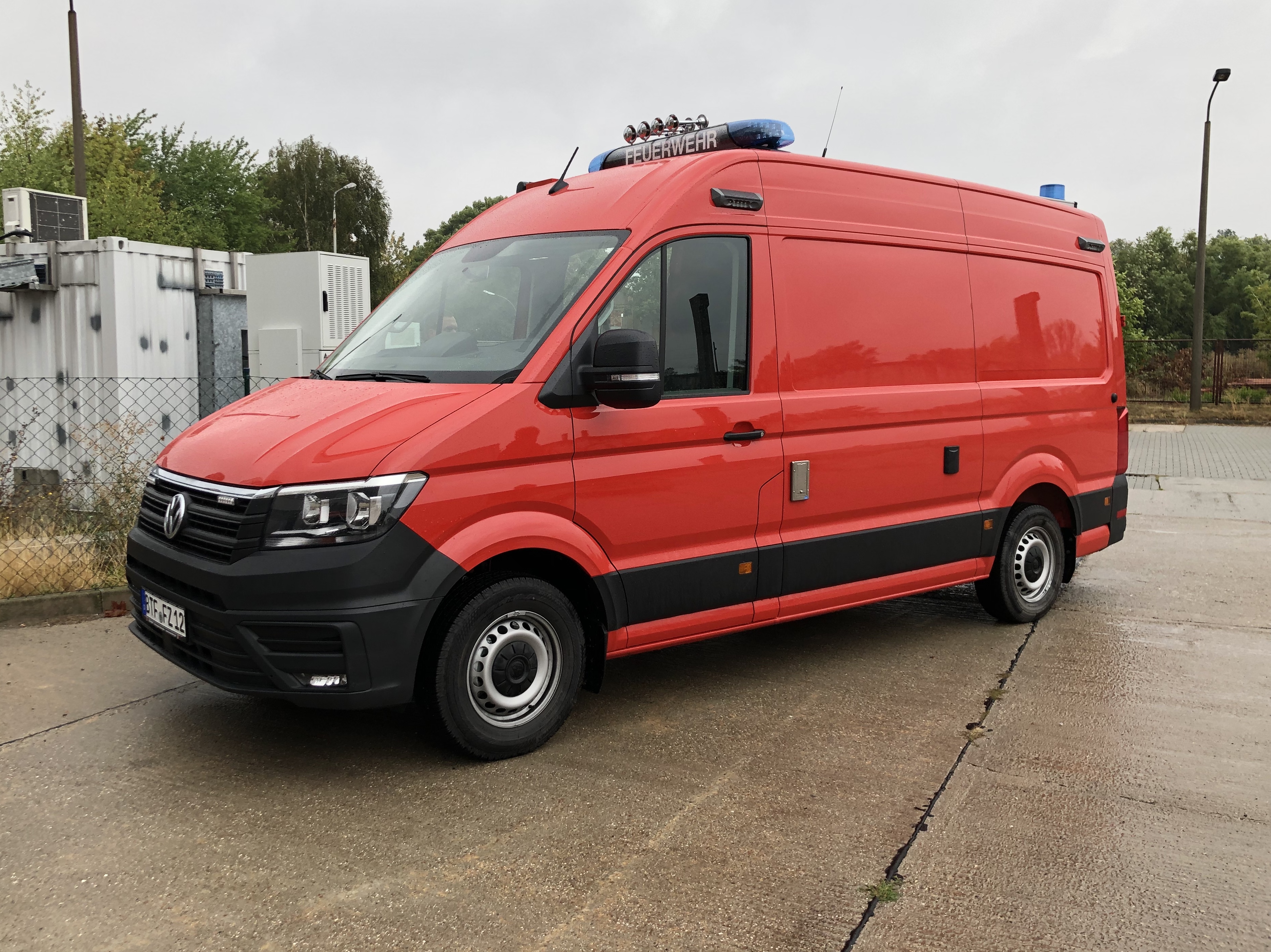 Eine Woche später, an diesem Montag, erfolgte dann die Beklebung des Fahrzeugs im Design der Feuerwehr, sodass es am Donnerstag beim Dienst eine zentrale Rolle spielen und bereits in freier Wildbahn gesichtet werden konnte.