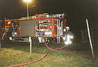Nach dem Beenden der Löscharbeiten wurde die Einsatzstelle an die Polizei übergeben und für die Ermittlungen noch weiter ausgeleuchtet.
