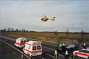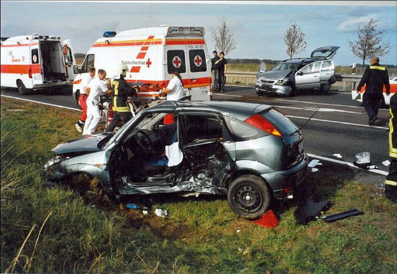 Verkehrsunfall zwischen zwei PKW auf der B183n Kreuzung Zörbig - Löberitz. Eine Person wurde im Fahrzeug eingeklemmt.Trotz Einsatz des Rettungshubschraubers erlagen beide Schwerverletzten wenige Tage nach dem Unfall ihren Verletzungen.