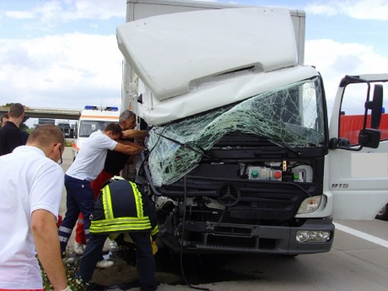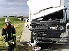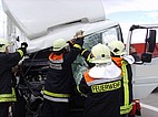Der Beifahrer des auffahrenden LKW wurde eingeklemmt und musste befreit werden.