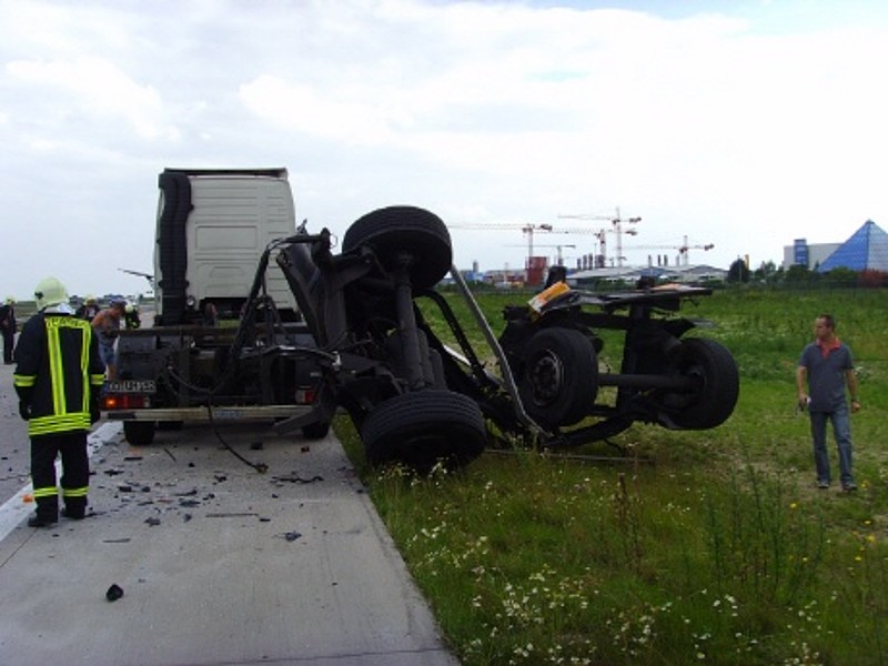 Ein LKW fuhr versetzt auf einen anderen, auf dem Standstreifen stehenden LKW auf.