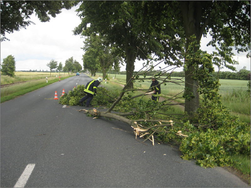 Die OF Zörbig beseitigte die Astteile und klemmte die Fahrzeugbatterie ab.