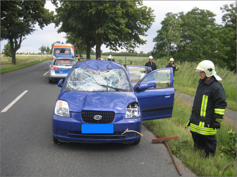 Am 12.06.2009 kam es gegen 14:54 Uhr auf der Kreisstraße Richtung Großzöberitz zu einem Unfall.