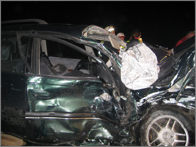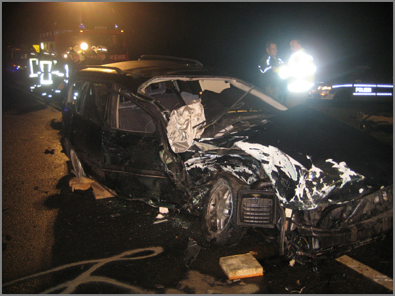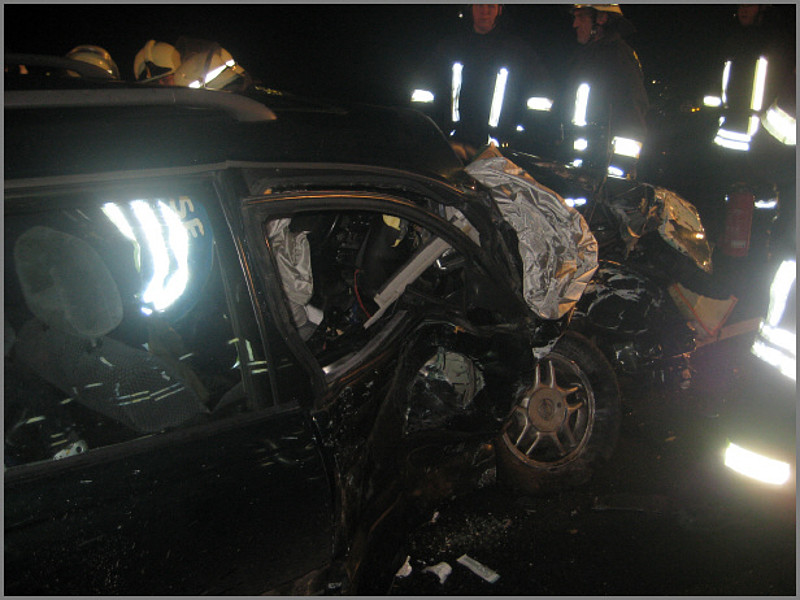 Es kollidierten 2 PKW, VW Passat und Opel Omega, eine Person war eingeklemmt und wurde nach der Öffnung des Fahrzeuges dem Rettungsdienst übergeben.