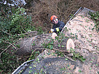 Die Kameraden der OF Zörbig zersägten den Baum und räumten die Straße frei.