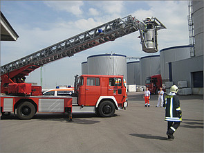 Bei einer Firma im zörbiger Gewerbegebiet stürzte ein Arbeiter in einem Getreidesilo von der Rüstung ab und wurde dabei verletzt.