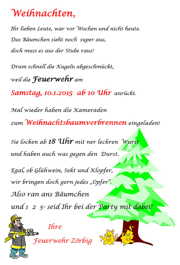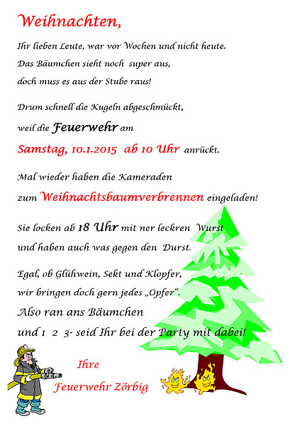 Die Veranstaltung am Sonnabend findet statt, jedoch werden aufgrund der Wetterlage keine Weihnachtsbäume verbrannt!