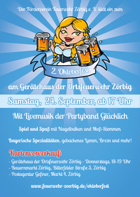 Feiert mit uns das zweite Oktoberfest am Gerätehaus der Ortsfeuerwehr Zörbig - mit Live-Musik der Partyband Glücklich.
